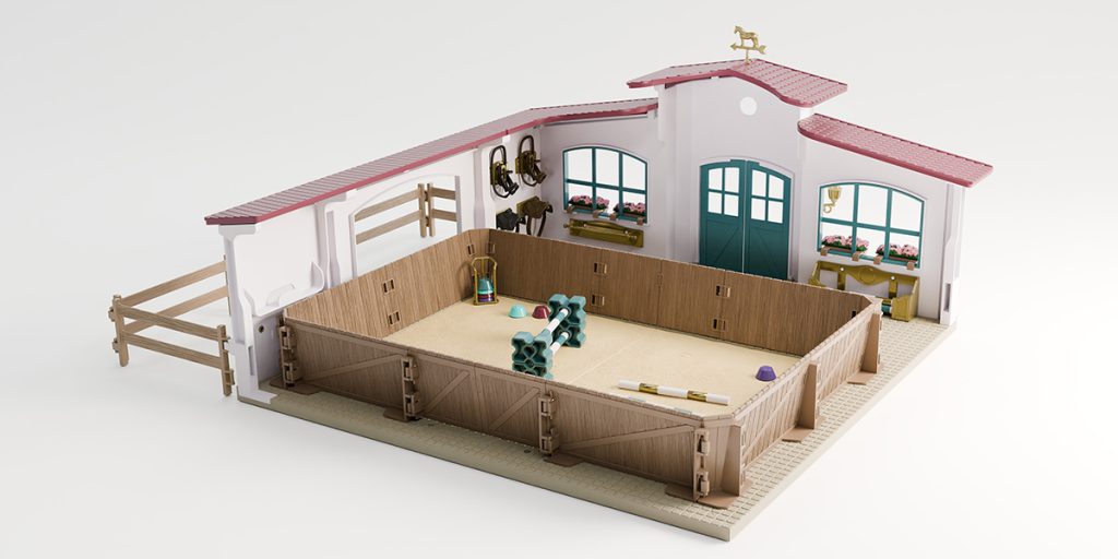 Die Ausstattung der Reithalle ist detailgetreu fürs Voltigieren und Hindernisreiten. Liebevoll ausgearbeitete Details und präzise modellierte Oberflächen lassen keinen Zweifel, dass hier Designer und Spielzeugentwickler am Werk waren, die nicht nur Erfahrung, sondern auch Leidenschaft mitbringen.