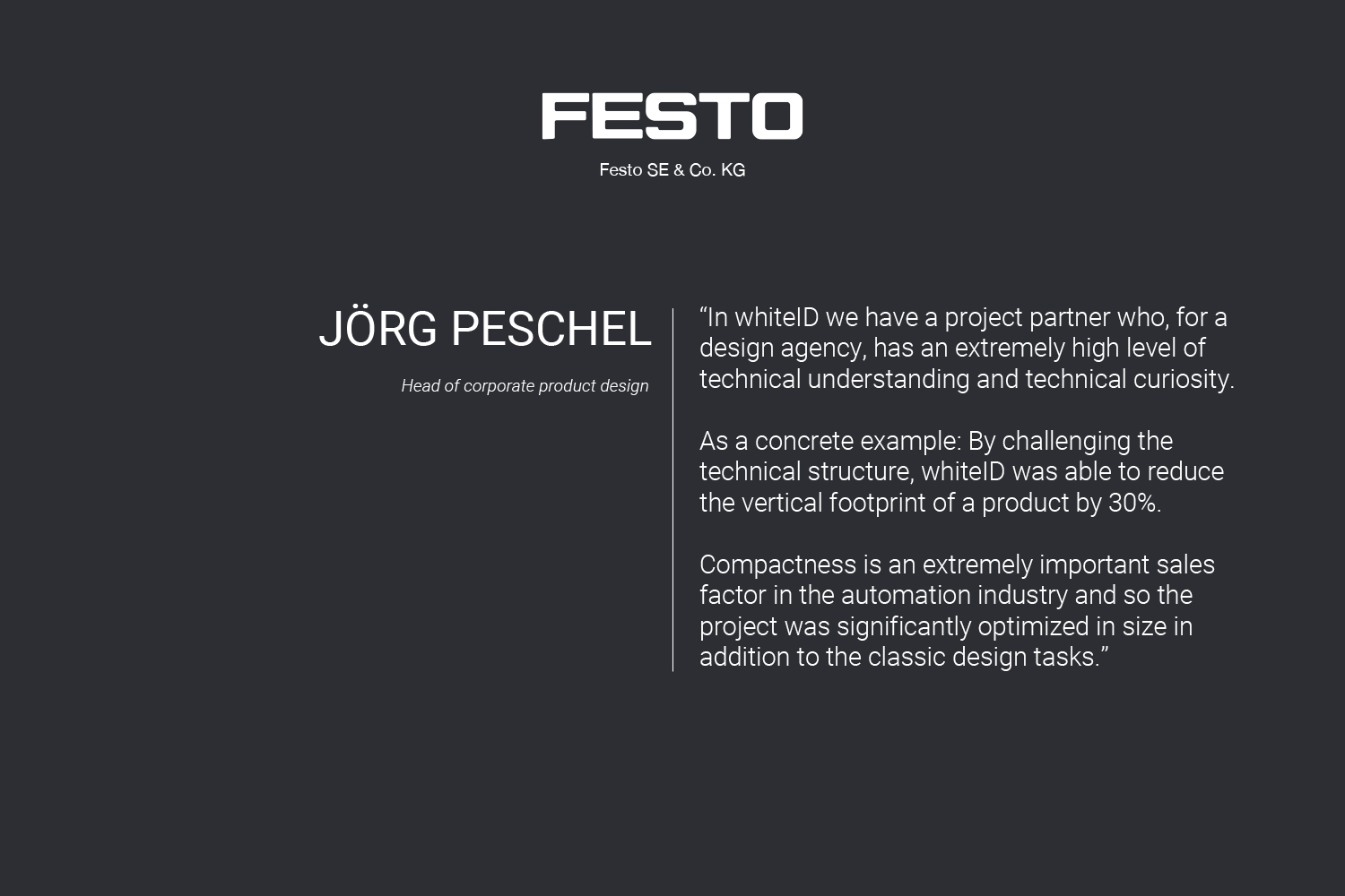 The CMAD combines technological performance, structural efficiency, and a clear, brand-typical design. Its focus on essentials and a design that strengthens Festo’s visual identity ensures that, at first glance, it conveys what the company stands for: innovation, quality, and progress – a market leader for over 100 years.