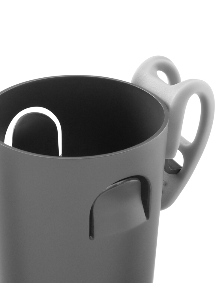 The cup holder’s very simple non-slip silicone loop can be affixed to all types of pipe tubing in any diameter. Whether you have a buggy, bicycle or shopping basket, the cup holder is all-purpose and can securely fix all conventional drinks containers in place. Its built-in swivel joint enables the cup holder to be perfectly placed in any position.